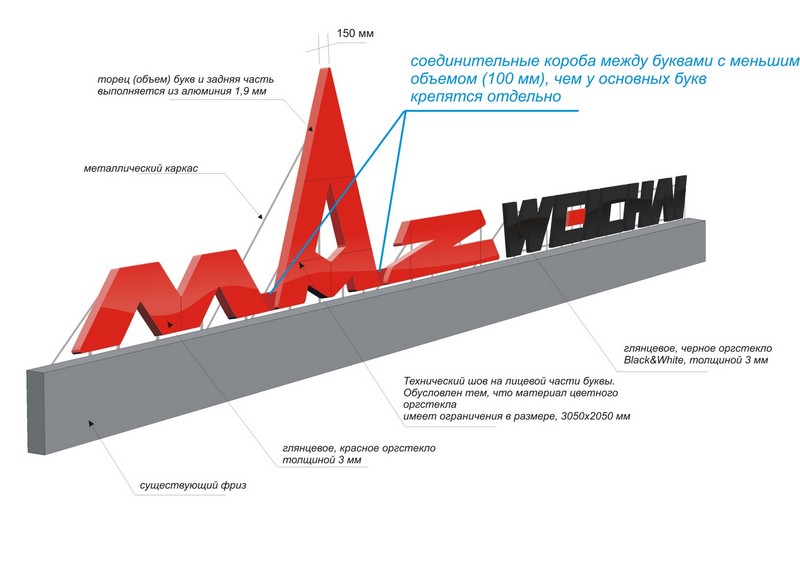 - Объемные буквы - устанавливаются на крышах или крепятся к фасадам, поэтому хорошо заметны издалека. Дополнительно подсвечиваются в темное время, чем повышают свою эффективность.